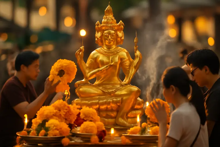 ปรากฏการณ์ความศรัทธาที่ล้นหลามนี้ ไม่ได้จำกัดอยู่แค่คนไทยเท่านั้น แต่ยังรวมถึงนักท่องเที่ยวต่างชาติที่เดินทางมาเพื่อสักการะบูชาและขอพรเกี่ยวกับเรื่องการงานและความสำเร็จในชีวิต หลายคนเลือกที่จะถวายดอกดาวเรืองจำนวนมาก ซึ่งเป็นสัญลักษณ์ของการนำมาซึ่งความเจริญรุ่งเรือง ตามความเชื่อที่สืบทอดกันมา นอกจากการขอพรแล้ว พิธีแก้บนด้วยนางรำก็ยังคงเป็นภาพที่คุ้นตา แสดงให้เห็นถึงความเชื่อที่ว่าการทำตามสัญญาที่ให้ไว้กับสิ่งศักดิ์สิทธิ์จะนำมาซึ่งความเป็นสิริมงคลยิ่งขึ้นไปอีก